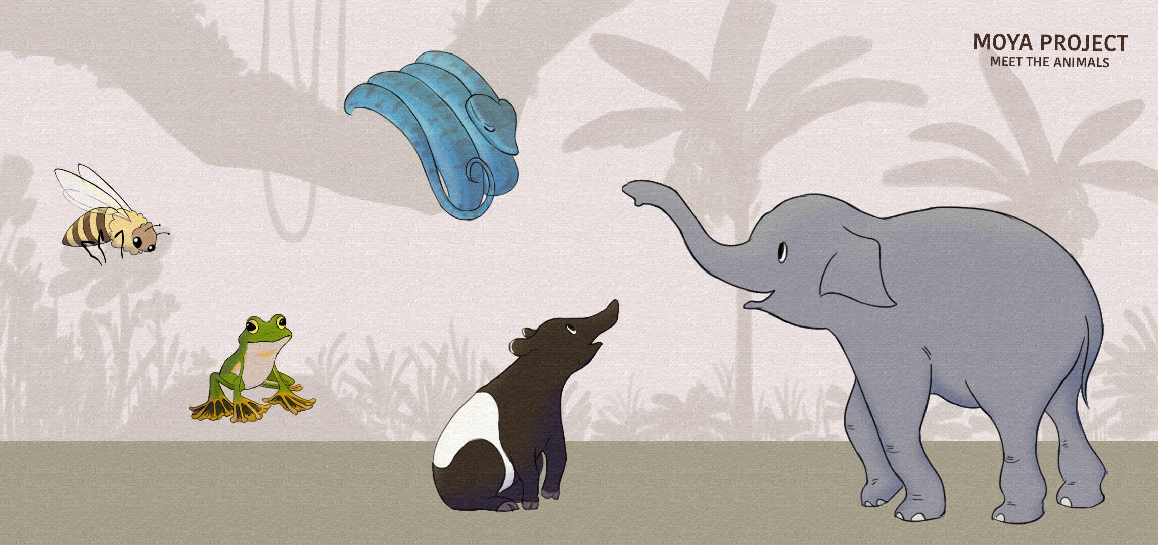 Meet Moya! A magical tapir-bee, protector and friend of all the animals in the forest. Watch him bounce, swim, and fly as he learns about the diverse ecosystem of the Malaysian forest.Etblisse, a Malaysia-based, wildlife conservation-centered online seller introduced their new mascot, Moya, with a short animated film.I, along with four teammates, designed and animated this three minute film, with assets created in Photoshop and Harmony, animation done in Harmony, and compositing in After Effects.Responsible for storyboards, effects animation, character animation and overall direction.